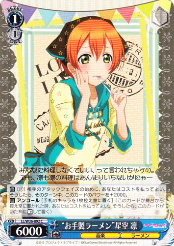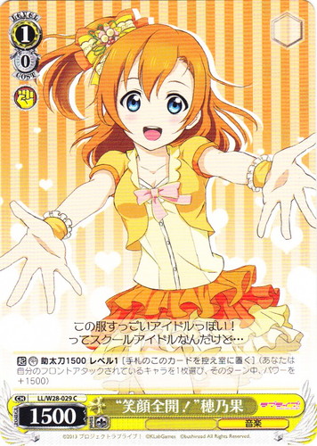 ![]() ![]() | LL/W24-018 小泉 花陽 キャラ ブースターパック ラブライブ! C 色:黄 レベル:0 コスト:0 パワー:3000 ソウル:1 特徴:音楽 作品名:ラブライブ! School idol project |