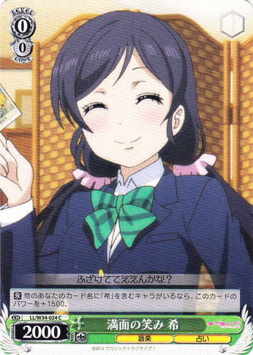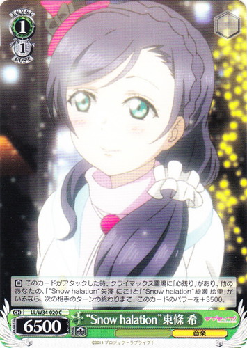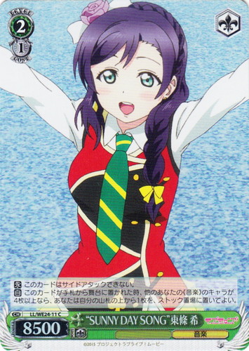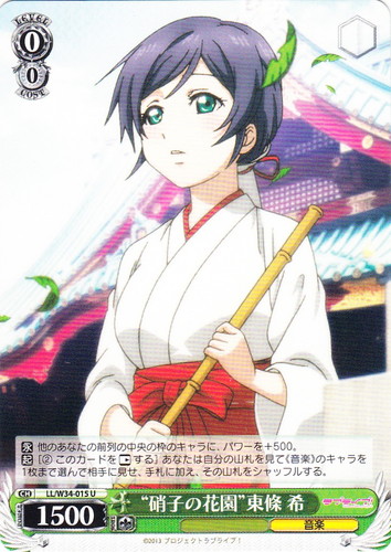 ![]() ![]() | LL/W24-020 東條 希 キャラ ブースターパック ラブライブ! C 色:黄 レベル:1 コスト:0 パワー:5500 ソウル:1 特徴:音楽 作品名:ラブライブ! School idol project |