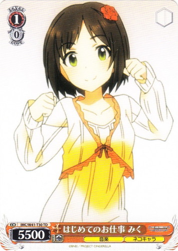 ![]() ![]() | IM/S14-021 LUCKY RABBIT イベント ブースターパック アイドルマスター2 U 色:黄 レベル:1 コスト:1 あなたは自分の「スタンド」している《音楽》のキャラを1枚選び「レスト」する。そうしたら、あなたは自分の山札を上から3枚まで見て、カードを1枚まで選び、手札に加える。残りのカードを控え室に置く。 このカードを思い出にする。 今日もステキなアクセを用意したわ~! 作品名:THE IDOLM@STER2 |