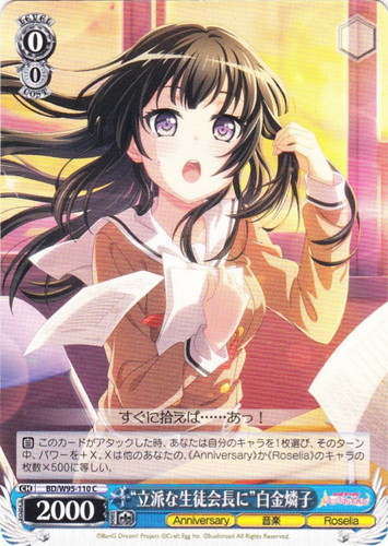 ![]() ![]() | LL/W24-015c “新たなるスタート” μ’s キャラ ブースターパック ラブライブ! C 色:黄 レベル:0 コスト:0 パワー:1000 ソウル:1 特徴:音楽 【永】応援 このカードの前のあなたのキャラすべてに、パワーを+500。 穂乃果「私たちのファーストライブは、この講堂でした」 作品名:ラブライブ! School idol project |