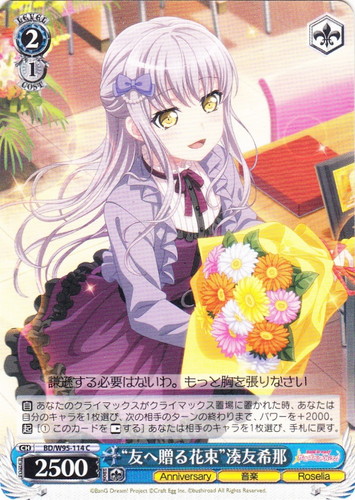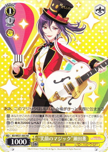 ![]() ![]() | LL/W24-105 “Wonderful Rush” 東條 希 キャラ トライアルデッキ ラブライブ! TD 色:黄 レベル:1 コスト:1 パワー:2000 ソウル:1 特徴:音楽 トリガー:ソウル 【起】【カウンター】助太刀2000 レベル1[①手札のこのカードを控え室に置く](あなたは自分のフロントアタックされているキャラを1枚選び、そのターン中、パワーを+2000) ウチのパワーが今日もみんなに届きますように―― 作品名:ラブライブ! School idol project |