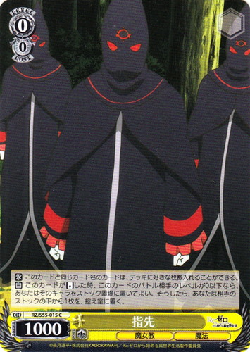 ![]() ![]() | RZ/S55-015 指先 キャラ ブースターパック Re:ゼロから始める異世界生活 Vol.2 C 色:黄 レベル:0 コスト:0 パワー:1000 ソウル:1 特徴:魔女教/魔法 【永】このカードと同じカード名のカードは、デッキに好きな枚数入れることができる。 【自】このカードが「リバース」した時、このカードのバトル相手のレベルが0以下なら、あなたはそのキャラをストック置場に置いてよい。そうしたら、あなたは相手のストックの下から1枚を、控え室に置く。 作品名:Re:ゼロから始める異世界生活 |