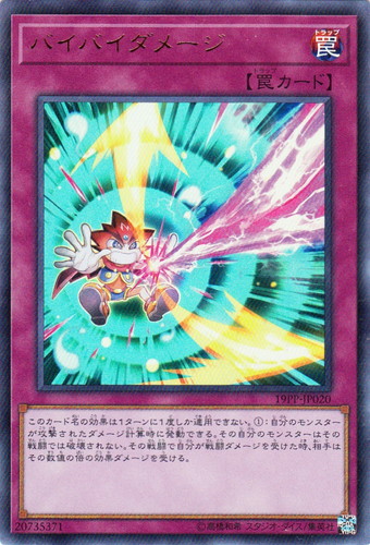 ①:自分のモンスターが攻撃されたダメージ計算時に発動できる。その自分のモンスターはその戦闘では破壊されない。その戦闘で自分が戦闘ダメージを受けた時、相手はその数値の倍の効果ダメージを受ける。