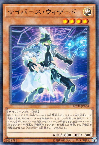 ![]() ![]() | 20TH-JPB34 サイバース・ウィザード モンスター 20th ANNIVERSARY DUELIST BOX ノーマルパラレル 属性:光 分類:効果 種族:サイバース族 レベル:4 攻撃力:1800 守備力:800 ①:1ターンに1度、相手フィールドの攻撃表示モンスター1体を対象として発動できる。そのモンスターを守備表示にする。この効果で守備表示にしたターン、自分のモンスターは対象のモンスターしか攻撃できず、自分のサイバース族モンスターが対象の守備表示モンスターを攻撃した場合、その守備力を攻撃力が超えた分だけ相手に戦闘ダメージを与える。 |