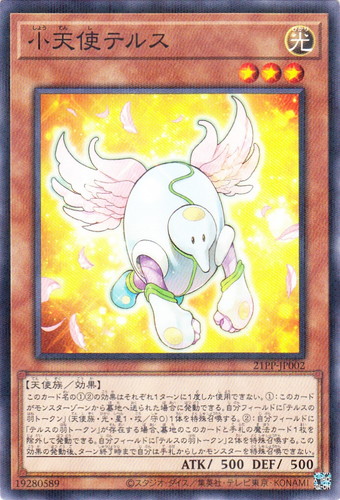 ![]() ![]() | 21PP-JP002 小天使テルス モンスター PREMIUM PACK 2021 ノーマルパラレル 属性:光 分類:効果 種族:天使族 レベル:3 攻撃力:500 守備力:500 このカード名の①②の効果はそれぞれ1ターンに1度しか使用できない。 ①:このカードがモンスターゾーンから墓地に送られた場合に発動できる。自分フィールドに「テルスの羽トークン」(天使族・光・星1・攻/守0)1体を特殊召喚する。 ②:自分フィールドに「テルスの羽トークン」が存在する場合、墓地のこのカードと手札の魔法カード1枚を除外して発動できる。自分フィールドに「テルスの羽トークン」2体を特殊召喚する。この効果の発動後、ターン終了時まで自分は手札からしかモンスターを特殊召喚できない。 |