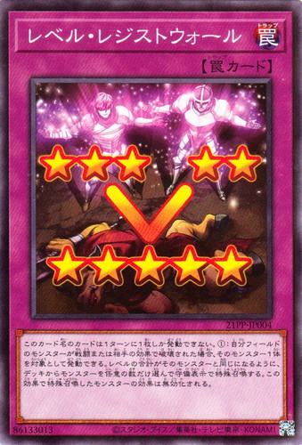 ![]() ![]() | 21PP-JP004 レベル・レジストウォール 罠 PREMIUM PACK 2021 ノーマル 分類:通常 このカード名のカードは1ターンに1枚しか発動できない。 ①:自分フィールドのモンスターが戦闘または相手の効果で破壊された場合、そのモンスター1体を対象として発動できる。レベルの合計がそのモンスターと同じになるように、デッキからモンスターを任意の数だけ選んで守備表示で特殊召喚する。この効果で特殊召喚したモンスターの効果は無効化される。 |