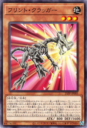 ![]() ![]() | 21PP-JP005 フリント・クラッガー モンスター PREMIUM PACK 2021 ノーマル 属性:地 分類:効果 種族:岩石族 レベル:3 攻撃力:800 守備力:1600 このカード名の①②の効果はそれぞれ1ターンに1度しか使用できない。 ①:このカードが特殊召喚に成功した場合に発動できる。自分の手札を1枚選んで、EXデッキから「化石」融合モンスター1体を墓地へ送る。 ②:フィールドのこのカードを墓地へ送って発動できる。相手に500ダメージを与える。自分の墓地に「化石融合―フォッシル・フュージョン」が存在する場合、さらに除外されている自分の、「化石融合―フォッシル・フュージョン」1枚またはそのカード名が記されたカード1枚を選んで墓地に戻す事ができる。 |