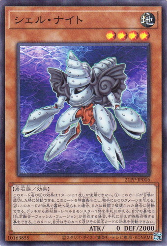 ![]() ![]() | 21PP-JP006 シェル・ナイト モンスター PREMIUM PACK 2021 スーパーレア 属性:地 分類:効果 種族:岩石族 レベル:4 攻撃力:0 守備力:2000 このカード名の②の効果は1ターンに1度しか使用できない。 ①:このカードが召喚に成功した時に発動できる。このカードを守備表示にし、相手に500ダメージを与える。 ②:このカードが効果で墓地へ送られた場合、または戦闘で破壊された場合に発動できる。デッキから岩石族・レベル8モンスター1体を手札に加える。自分の墓地に「化石融合―フォッシル・フュージョン」が存在する場合、手札に加えず特殊召喚する事もできる。このターン、自分はそのカード及びその同名カードの効果を発動できない。 |