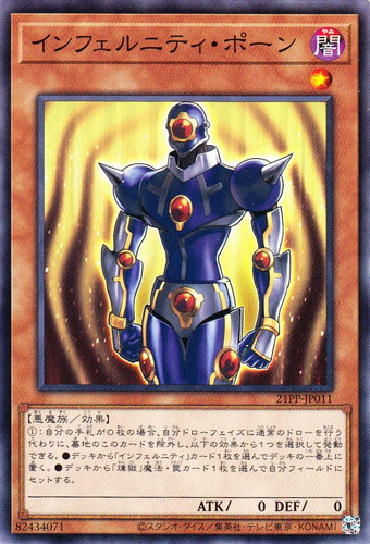 ![]() ![]() | 21PP-JP011 インフェルニティ・ポーン モンスター PREMIUM PACK 2021 ノーマル 属性:闇 分類:効果 種族:悪魔族 レベル:1 攻撃力:0 守備力:0 ①:自分の手札が0枚の場合、自分ドローフェイズに通常のドローを行う代わりに、墓地のこのカードを除外し、行かの効果から1つを選択して発動できる。 ●デッキから「インフェルニティ」カード1枚を選んでデッキの一番上に置く。 ●デッキから「煉獄」魔法・罠カード1枚を選んで自分フィールドにセットする。 |