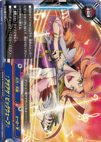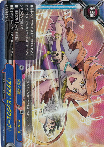 ![]() ![]() | D-EB03/0045 ↑アゲアゲ↑ビッグウェーブ☆ 必殺技 DDD エクストラブースター 第3弾 HEAVEN&HELL 上 ワールド:ヒーローW 属性:火力/天国 ■相手のライフが3以下で、相手のセンターにモンスターがいなくて、君のドロップゾーンが0枚なら使える。 ■【使用コスト】ライフ2を払う。 ■相手にダメージ3!!このカードのダメージは減らない。 テンション爆アゲでいくわよ~~~♪ イラスト:yazwo |