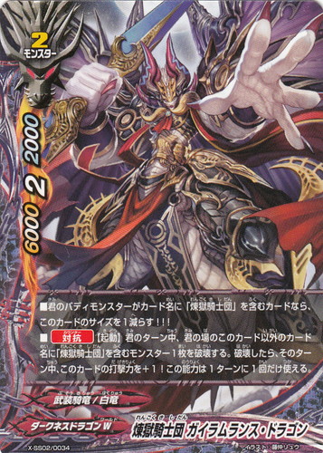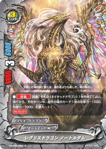 ![]() ![]() | EB01/0004 次元魔竜 ラディス・ザ・タイラント モンスター エクストラブースター 第1弾 不死身の竜神 ガチレア ワールド:エンシェントW 属性:ドラゴンロード/ネイキッドドラゴン サイズ:3 攻撃力:7000 防御力:6000 打撃力:3 ■【コールコスト】ゲージ3を払う。 ■【対抗】【起動】手札の《ネイキッドドラゴン》1枚を捨ててよい。捨てたら、次の2つから1つを選んで使う。 】 イラスト:KIYA |