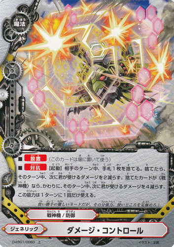![]() ![]() | H-TD01/0014 プロトバリア 魔法 ハンドレッド トライアルデッキ 第1弾 ドラゴニック・スター ワールド:スタードラゴンW 属性:防御 ■君が攻撃されている攻撃中に使える。 ■【対抗】その攻撃を無効化し、君のデッキの上から1枚をゲージに置く。 プロトバリアはバリア機構の原点だ。 エネルギータンクを内蔵しているから、補給に役立ててくれたまえ。 イラスト:藤原ひさし |