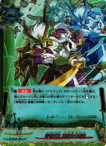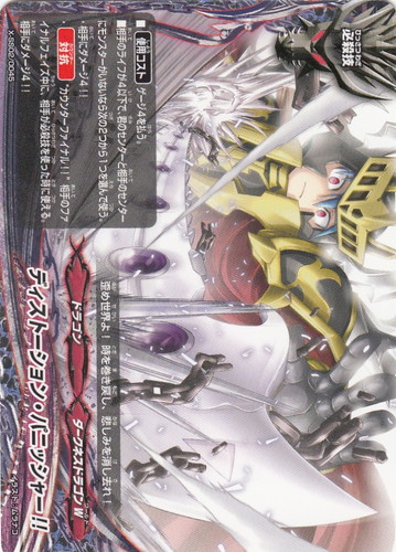 ![]() ![]() | CR/0010 ドラゴニック・シュート 魔法 まんが版 フューチャーカード バディファイト 第1巻 特装版ふろく ワールド:ドラゴンW 属性:青竜 ■【対抗】場の攻撃力3000以下のモンスター1体を破壊する。 雷竜の稲妻は、視線の速度で敵を撃つ。 イラスト:日田慶治 |