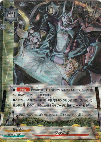 ![]() ![]() | BT05/0071 秘剣 綺羅星 必殺技 ブースターパック 第5弾 煉獄ナイツ 上 ワールド:カタナW 属性:忍法/秘剣 ■君が連携攻撃されている攻撃中、このカードがカード名に「秘剣」を含むカードのソウルにあるなら使える。(このカードは手札から使えない) ■【使用コスト】ゲージ3を払う。 ■【対抗】その攻撃を無効化し、相手にダメージ5! 仲間、思い出、そして戦い。人生を飾る綺羅星のごとく。 イラスト:Quily |