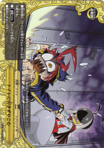 ![]() ![]() | X-CBT01/0058 BENZAオン!GO!ハナコWC! 必殺技 バッツ クライマックスブースター 第1弾 最強バッツ覚醒!~赤き雷帝~ 上 ワールド:レジェンドW 属性:妖精/トイレ ■【使用コスト】ゲージ1を払う。 ■次の2つから1つを選んで使う。 ・君の場にサイズ3以上の《トイレ》がいるなら、君のドロップゾーンの《トイレ》のアイテム1枚までを、【装備コスト】を払わず装備する。 ・君のデッキから《トイレ》2枚までをドロップゾーンに置き、デッキをシャッフルする。 強いぞボクらのハナコWC♪ 負けるなボクらのハナコWC♪ イラスト:なかざき冬 |