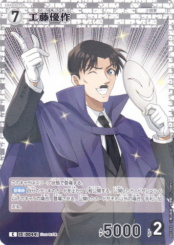 ![]() ![]() | A01052 工藤優作 キャラクター グミ 探偵たちの切札/西と東の大決戦 C(foil) 色:白 レベル:7 AP:5000 LP:2 特徴:小説家 このキャラはスリープ状態で登場する。 【登場時】自分のデッキのカードを上から1枚公開する。公開したカードがレベル6以下のキャラの場合、登場させる。公開したカードがそれ以外の場合、手札に加える。 illust:あず葉 |