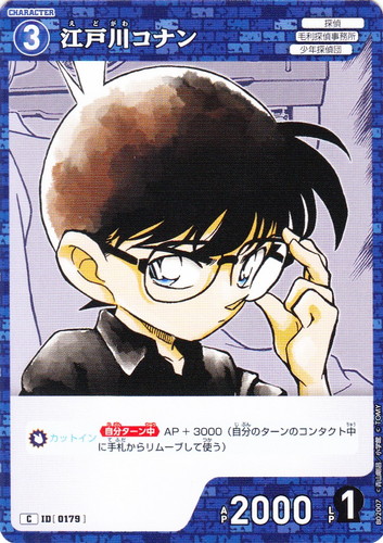 ![]() ![]() | B02007 江戸川コナン キャラクター 拡張パック 第2弾 西と東の大決戦 C 色:青 レベル:3 AP:2000 LP:1 特徴:探偵/毛利探偵事務所/少年探偵団 【カットイン】【自分ターン中】AP+3000(自分のターンのコンタクト中に手札からリムーブして使う) |