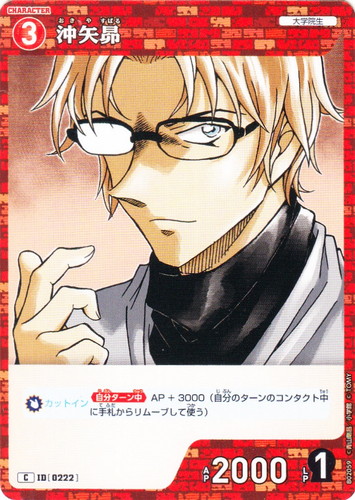 ![]() ![]() | B02059 沖矢昴 キャラクター 拡張パック 第2弾 西と東の大決戦 C 色:赤 レベル:3 AP:2000 LP:1 特徴:大学院生 【カットイン】【自分ターン中】AP+3000(自分のターンのコンタクト中に手札からリムーブして使う) |