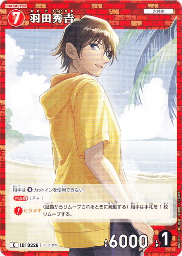 ![]() ![]() | B02063 羽田秀吉 キャラクター 拡張パック 第2弾 西と東の大決戦 C 色:赤 レベル:7 AP:6000 LP:1 特徴:赤井家 相手は【カットイン】を使用できない。 【FILE⑧】LP+1 【ヒラメキ】(証拠からリムーブされるときに発動する)相手は手札を1枚リムーブする。 illust:春木 |