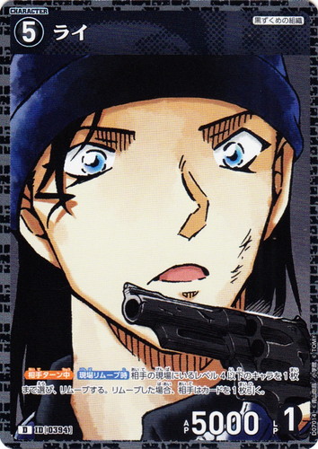 ![]() ![]() | D07002 シェリー キャラクター Case-ThemeDeck 02 黒ずくめの組織 D(foil) 色:黒 レベル:2 AP:1000 LP:1 特徴:黒ずくめの組織 【カットイン】AP+2000(コンタクト中に手札からリムーブして使う) illust:松田硯 |