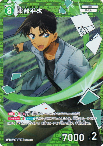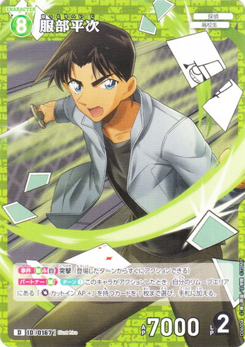 ![]() ![]() | D06004 服部平次 キャラクター Case-ThemeDeck 01 服部平次VS怪盗キッド D 色:緑 レベル:8 AP:7000 LP:2 特徴:探偵/高校生 【事件緑&白】突撃(登場したターンからすぐにアクションできる) 【パートナー(緑)】【ターン①】このキャラがアクションしたとき、自分のリムーブエリアにある「【カットイン】AP+」を持つカードを1枚まで選び、手札に加える。 illust:hiro |