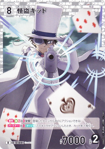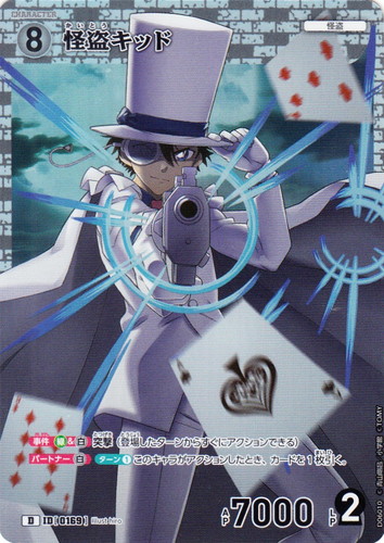 ![]() ![]() | D06010 怪盗キッド キャラクター Case-ThemeDeck 01 服部平次VS怪盗キッド D(foil) 色:白 レベル:8 AP:7000 LP:2 特徴:怪盗 【事件緑&白】突撃(登場したターンからすぐにアクションできる) 【パートナー(白)】【ターン①】このキャラがアクションしたとき、カードを1枚引く。 illust:hiro |