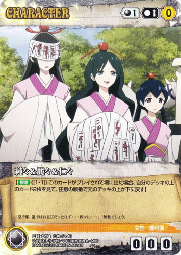 ![]() ![]() | CH-017 ホウメイ CHARACTER 【クルセイド】機動戦艦ナデシコ~The prince of darkness~ C 色:赤 コスト[指定/合計(資源)]:赤1/3(0) G:赤 攻撃力:0 支援力:0 防御力:0 特徴:ネルガル/女性/大人 【常時】《①》(場の)ユニット1枚は、ターン終了時まで、合計コスト+1、または合計コスト-1を得る。 「タコさんウィンナー入りハヤシの火星丼かな」 出典:機動戦艦ナデシコ |