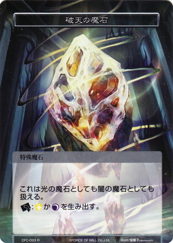![]() ![]() | CFC-093 破天の魔石 特殊魔石 ラピスクラスタ 第1弾 ブースターパック 氷棺の聖女 R 属性:光/闇 これは光の魔石としても闇の魔石としても扱える。 [レスト]:(光)か(闇)を生み出す。 illust:猫囃子(Nekobayashi) |