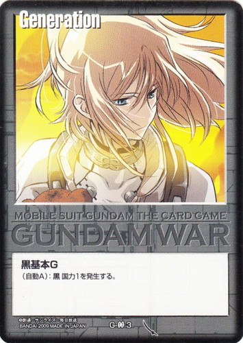 ![]() ![]() | G-45 黒基本G Generation 武神降臨 色:黒 (自動A):黒国力1を発生する。 |