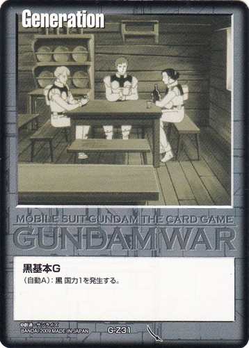 ![]() ![]() | G-Z31 黒基本G Generation 武神降臨 色:黒 (自動A):黒国力1を発生する。 |
