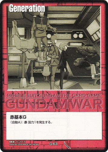 ![]() ![]() | G-63 赤基本G Generation 武神降臨 色:赤 (自動A):赤国力1を発生する。 |