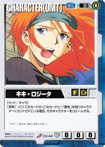 ![]() ![]() | CH-44 キキ・ロジータ CHARACTER 永久の絆 U 色:青 セット対象:UNIT コスト[指定/合計(資源)]:青1/1(0) 格闘力:0 射撃力:0 防御力:0 特徴:女性/子供 【セット/キャラ】 (常時):《①》このカードが(このカードと)「異性」を持つキャラクターにセットされている場合、そのキャラクターをリロールする。 「シロー!あんた、あたしを守ってる・・・」 |