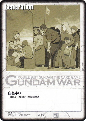 ![]() ![]() | G-S9 白基本G Generation DXウィナーズスターター 純白の鋼翼 色:白 (自動A):白国力1を発生する。 |