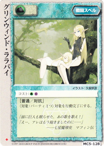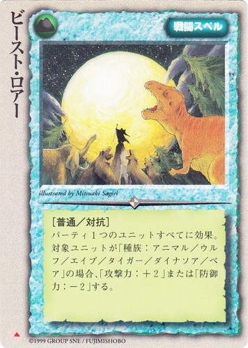 ![]() ![]() | ライン・アップ 戦闘スペル モンスター・コレクション ◆ 属性:風 [普通/対抗] 1つのパーティの隊列を変更する。 illustrated by Peter Salt |