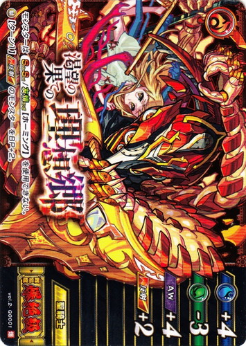 ![]() ![]() | vol.5-0080 徳川の最終兵器 本多忠勝 モンスター 第5弾 至高なる魔宴 C 属性:闇 種族:サムライ 戦型:パワー型 撃種:貫通 BP:4 ラック:4 ランク:IV アビリティ:AW/アンチウィンド |