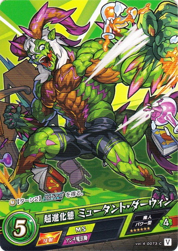 ![]() ![]() | vol.4-0073 超進化態 ミュータント・ダーウィン モンスター 第4弾 祝福されし世界 C 属性:木 種族:魔人 戦型:パワー型 撃種:反射 BP:5 ラック:4 ランク:V アビリティ:MS/アンチ魔法陣 【タイマー】【ターン2】【スピードアップ】を得る。 |