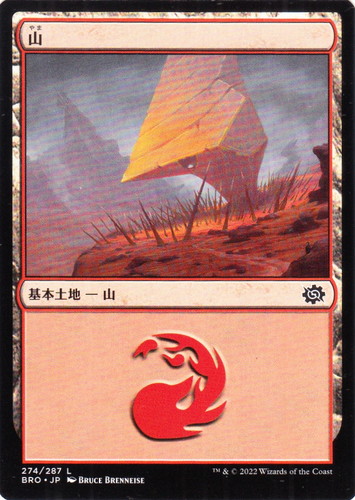 ![]() ![]() | BRO 274 山 基本土地 兄弟戦争 L 色:赤 サブタイプ:山 illust:BRUCE BRENNEISE |
