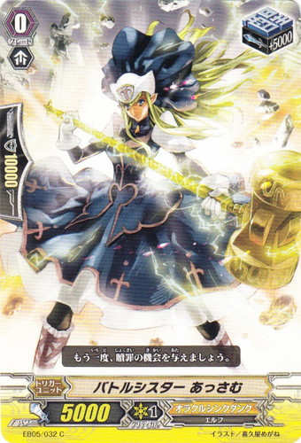 【自】:このユニットが(R)に登場した時、あなたのカード名に「魔女」を含むヴァンガードがいて、相手のグレード0のリアガードが2枚以上なら、【ソウルチャージ①】し、あなたのダメージゾーンから1枚選び、表にする。