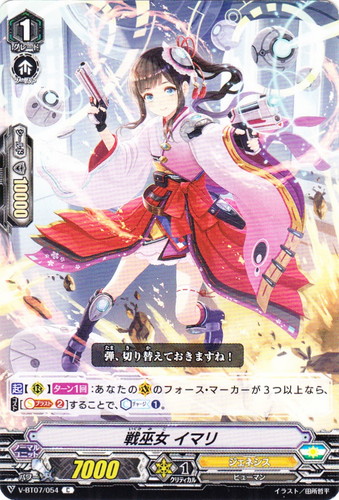 ![]() ![]() | V-BT07/054 戦巫女 イマリ ノーマルユニット Vブースターパック 第7弾 神羅創星 C 国家:ユナイテッドサンクチュアリ クラン:ジェネシス 種族:ヒューマン スキル:ブースト グレード:1 パワー:7000 クリティカル:1 シールド値:10000 【起】【R】【ターン1回】:あなたの(V)の[[フォース・マーカー>イマジナリーギフト フォース]]が3つ以上なら、【コスト[【ソウルブラスト②】]】することで、【カウンターチャージ①】。 弾、切り替えておきますね! イラスト:田所哲平 |
