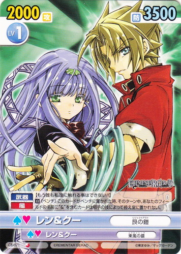 ![]() ![]() | CB/072 レン&クー/東風の鎧 キャラクター ブースターパック コミックブレイド C 作品名:EREMENTAR GERAD パートナー:レン&クー/艮の鎧 Lv:1 攻:2500 防:3000 性別:男性/女性 アイコン:スパーク 《武器》《風》【オレ達今 シンクロ率200%】 【スパーク】【自】あなたのベンチに名前に“&”を含むカードがいるなら、あなたは相手のフィールドのカードを1枚選び、相手の控え室に置く。 |