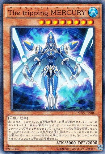 ![]() ![]() | CPF1-JP006 The tripping MERCURY モンスター コレクターズパック―閃光の決闘者編― ノーマル 属性:水 分類:効果 種族:水族 レベル:8 攻撃力:2000 守備力:2000 ①:このカードがアドバンス召喚に成功した時に発動できる。フィールドのモンスターを全て表側攻撃表示にする。 ②:このカードはモンスター3体をリリースして召喚する事もできる。 ③:このカードの②の方法で召喚したこのカードがモンスターゾーンに存在する限り、相手フィールドのモンスターの攻撃力はそのモンスターの元々の攻撃力分ダウンする。 ④:このカードは1度のバトルフェイズ中に2回攻撃できる。 |