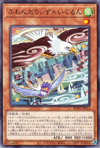 ![]() ![]() | BODE-JP014 ふわんだりぃず×いぐるん モンスター BURST OF DESTINY ノーマル 属性:風 分類:効果 種族:鳥獣族 レベル:1 攻撃力:800 守備力:1000 このカード名の①③の効果はそれぞれ1ターンに1度しか使用できず、この効果を発動するターン、自分はモンスターを特殊召喚できない。 ①:このカードが召喚に成功した場合に発動できる。デッキからレベル7以上の鳥獣族モンスター1体を手札に加える。その後、鳥獣族モンスター1体を召喚できる。 ③:表側表示のこのカードはフィールドから離れた場合に除外される。 ③:このカードが除外されている状態で自分フィールドに鳥獣族モンスターが召喚された場合に発動できる。このカードを手札に加える。 |