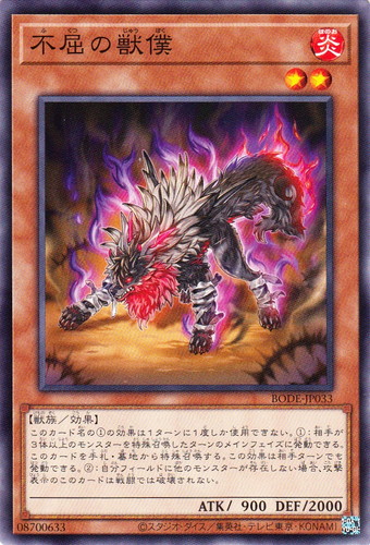 ![]() ![]() | BODE-JP033 不屈の獣僕 モンスター BURST OF DESTINY ノーマル 属性:炎 分類:効果 種族:獣族 レベル:2 攻撃力:900 守備力:2000 このカード名の①の効果は1ターンに1度しか使用できない。 ①:相手が3体以上のモンスターを特殊召喚したターンのメインフェイズに発動できる。このカードを手札・墓地から特殊召喚する。この効果は相手ターンでも発動できる。 ②:自分フィールドに他のモンスターが存在しない場合、攻撃表示のこのカードは戦闘では破壊されない。 |