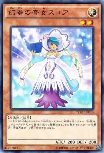 ![]() ![]() | BOSH-JP013 幻奏の音女スコア モンスター ブレイカーズ・オブ・シャドウ ノーマル 属性:光 分類:効果 種族:天使族 レベル:2 攻撃力:200 守備力:200 ①:自分の「幻奏」モンスターが相手モンスターと戦闘を行うダメージ計算時、このカードを手札から墓地へ送って発動できる。その相手モンスターの攻撃力・守備力はターン終了時まで0になる。 |