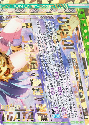 ![]() ![]() | E18-022 友情で結ばれたゾンネ ゼクス エクストラパック 第18弾 Code reunion R 色:黒 種族:トーチャーズ/リユニオン アイコン:イグニッション コスト:2 パワー:3000 【常】ヴォイドブリンガー(このカードがライフから登場する際、あなたのライフが相手のライフ以下ならば、スクエアにあるゼクスを1枚まで選び、トラッシュに置く。) 【常】【P】「纏」【有効】フォースゾーン【効果】スクエアにあるあなたの[オーバーブースト]があり、このカードがゼクスのフォースの場合、そのゼクスのパワーを+2000し、以下の能力を与える。“【常】レンジ2(このカードは2つ先のスクエアまで攻撃する。)”「友情で結ばれたゾンネ」のこの能力は重複しない。 ・・・・・・薄汚い手でゾンネに触るな・・・・・・。絶対許せない・・・・・・。この世から消えて償え。 ~東雲纏~ illust:藤真拓哉 |